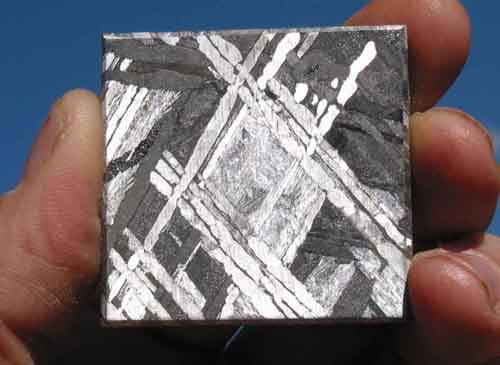 http://geology.com/meteorites/images/gibeon-pattern-750.jpgThanks for the link to those iron meteorites. Here's an enlargement of an example shown at your link. These are fascinating, puzzling, and beautiful. I'll have to read the information at your link to try to understand how these visible effects are formed.